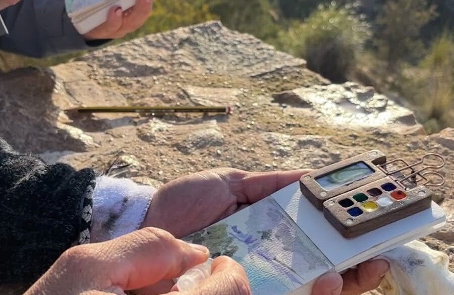 A woman sits at a corner table in a sun-drenched café in Lisbon, a small sketchbook open beside her half-finished...